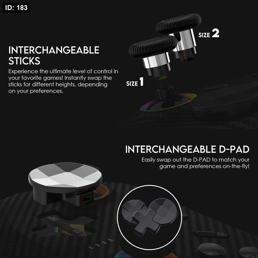 •عصي التحكم (Analog Sticks): مزودة بتقنية Hall Effect مقاومة للانحراف (Anti-Drift)