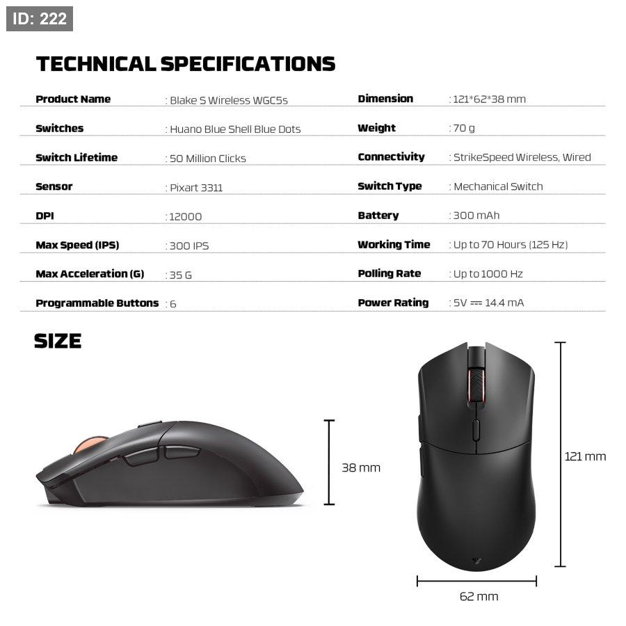 سعة البطارية ~ 300 mAh، مدة استخدام لغاية 70 ساعة في وضع الـ 2.4GHz عند تردد الاستطلاع (polling rate) 125Hz