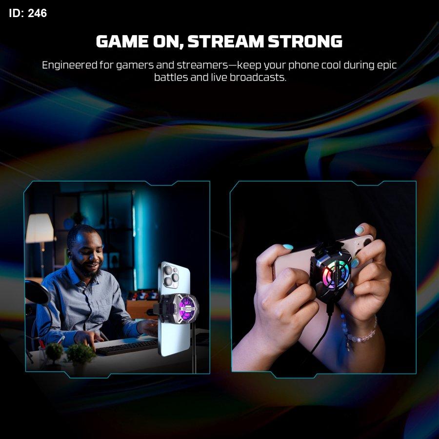 The PC10 features an aluminum cooling plate that effectively dissipates heat, ensuring your device remains cool during intensive use. Its high-speed fan operates between 3000 and 4500 RPM, providing rapid cooling to prevent overheating. The cooler’s magnetic and detachable clamp design allows for easy attachment and removal, accommodating a wide range of smartphone sizes. Additionally, the rainbow RGB lighting adds a vibrant aesthetic, enhancing your gaming or streaming setup