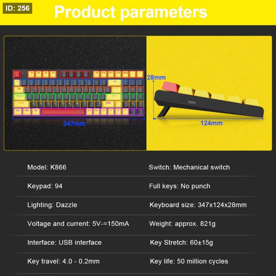 High quality LED backlit mechanical gaming Rainbow backlighting keyboard YES! TRUE HOT-SWAP – The transformative innovation with 99.8%+ switches compatible free-mod hot swappable Redragon keyboard is available now. The unique exclusive structure design of the socket makes the switch mounting easier and less wobbling. Practical Wired 94 Keys – Redragon 85% layout K866 in wired mode meets the user’s need for separate arrow keys and number keys. The 94-key layout provides the ultimate balance of compactness and 104-key functionality, allowing for the smoothest habit curve. Ergonomic Comfort and High Quality The design of this 94-key keyboard is based on ergonomics, the two keyboard kickstands provide a comfortable angle for typing and effectively reduce the burden on the wrist. Durable metal plate and abs construction, type C cable stand up to hardcore gaming
