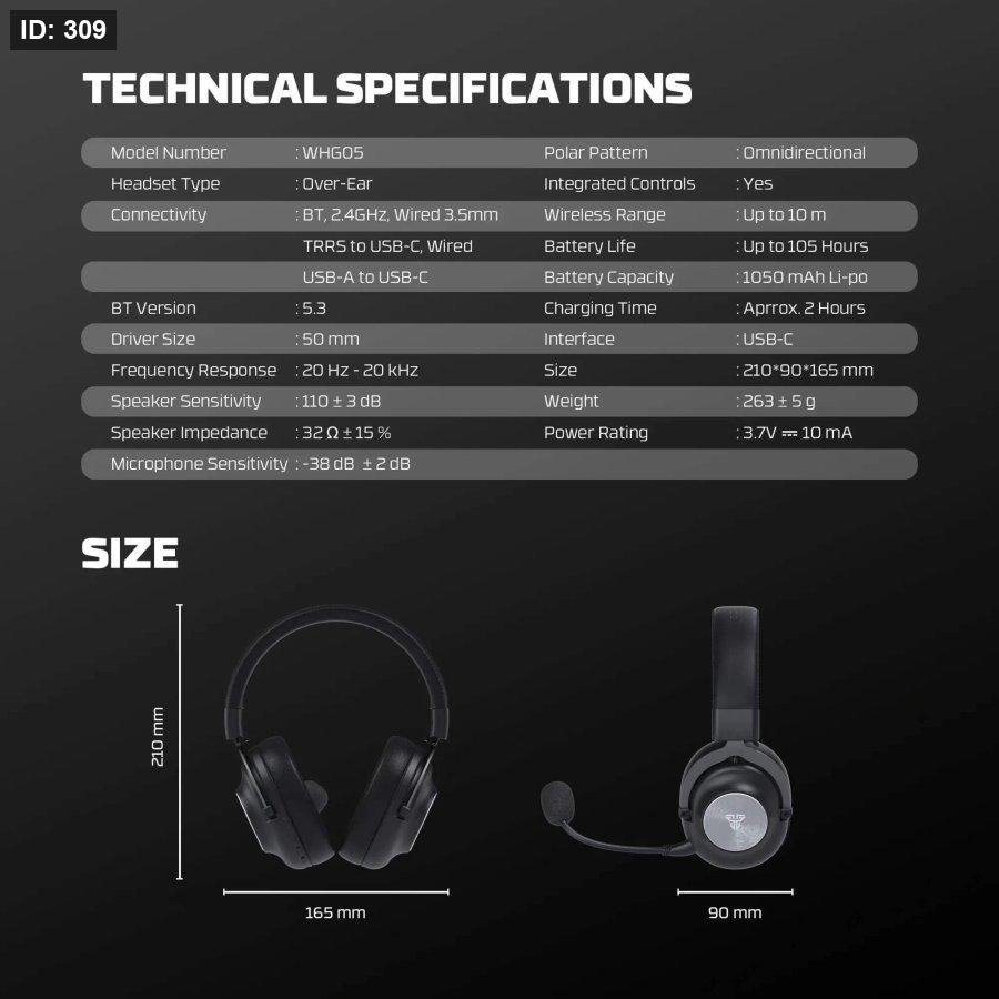 الاتصال: مقبس صوت ٣.٥ مم / بلوتوث ٥.٣ / لاسلكي ٢.٤ جيجاهرتز