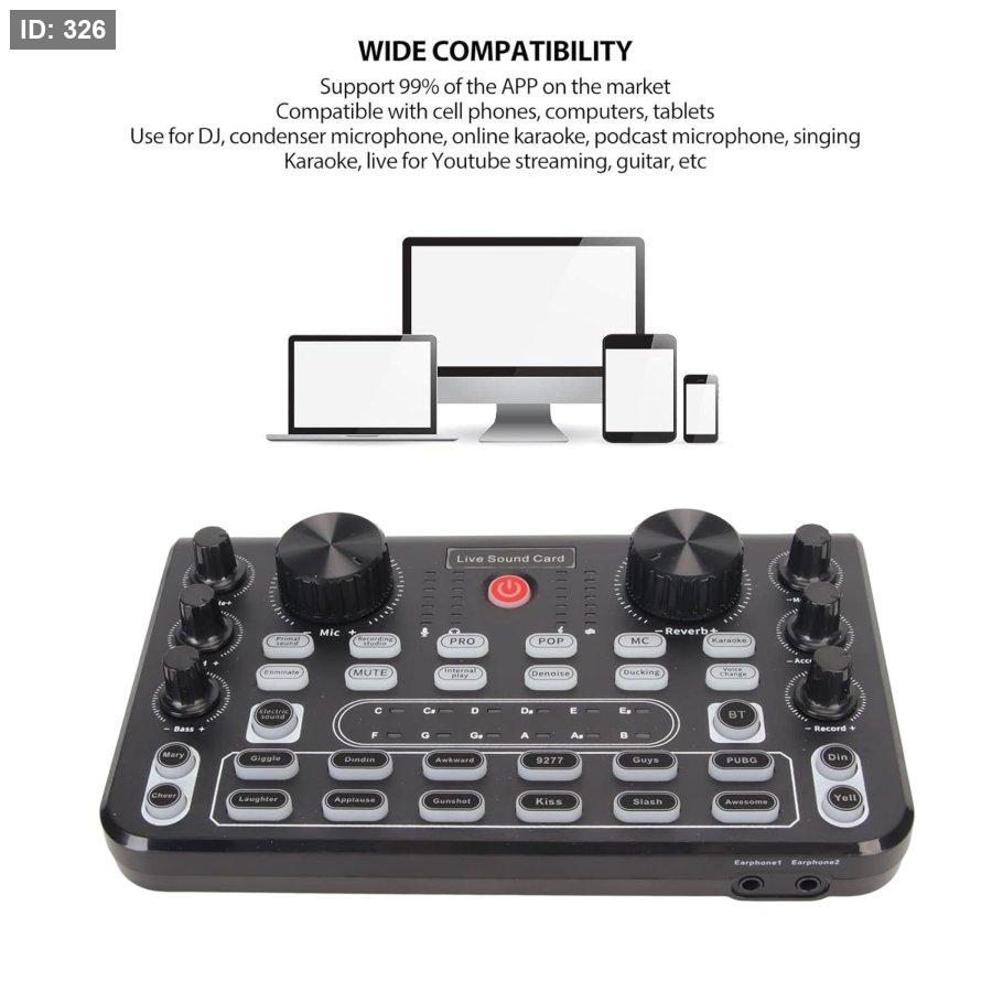 WIDE COMPATIBILITY: Sound mixer board supports 99% of APPs on the market, compatible with cell phones, computers and tablets. Use for DJ, condenser microphone, online karaoke, podcast microphone, singing, Karaoke, live for Youtube streaming, guitar, etc