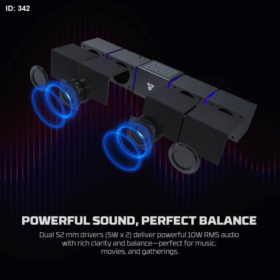 صوت ستيريو قوي: يأتي بمشغلات مزدوجة 52 ملم (5 واط × 2) لتجربة صوتية بقوة 10 واط (RMS) واضحة ومتوازنة، مثالية للألعاب، الأفلام، والموسيقى.