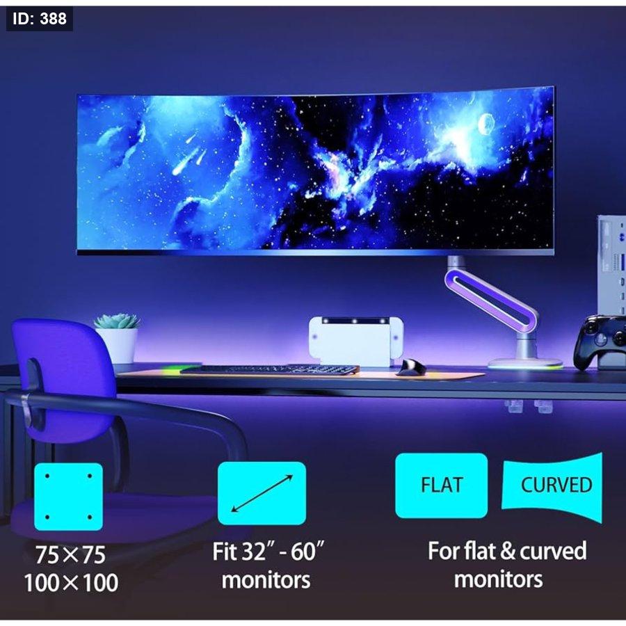 Fits Ultra Wide Screens, Single mount for ultra-wide monitors up to 60” in size and 44 lbs in weight monitor stand with strong mechanical spring for most Flat / Ultrawide / Curved monitor screen, with 75x75mm or 100x100mm VESA patterns.