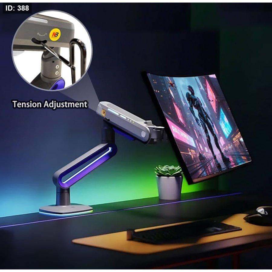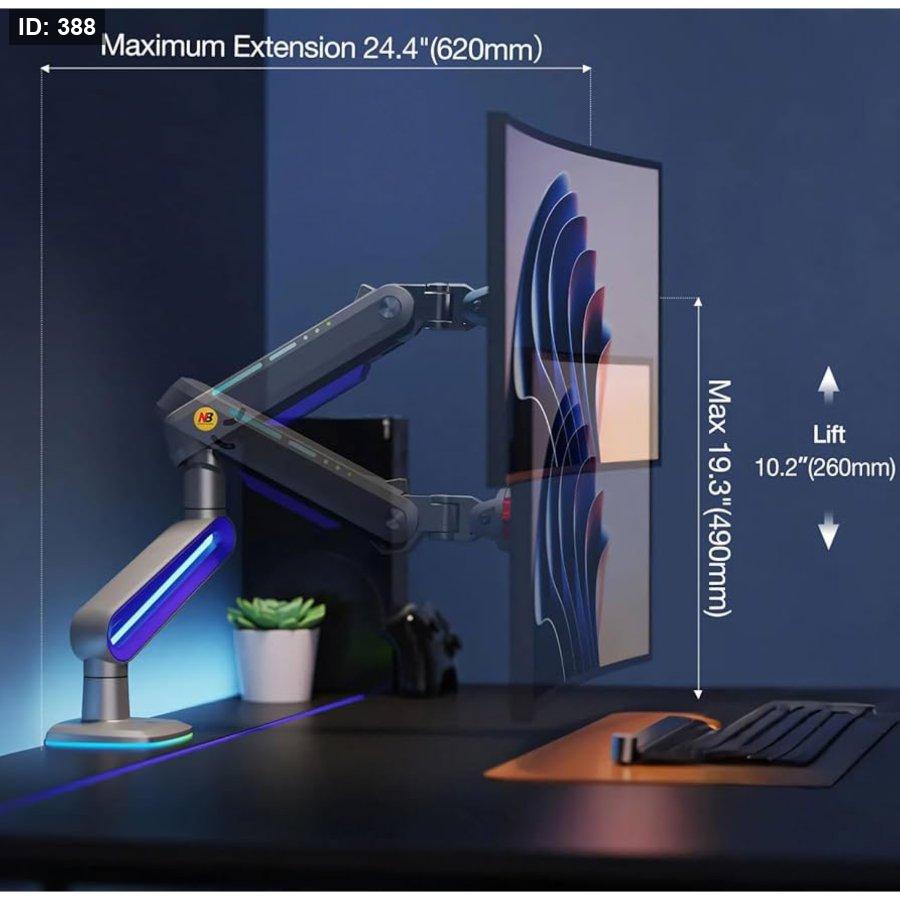 Adjustable - The gaming monitor arm support flexible adjustment of angles, upright 260 mm, rotation 360 degree, tilt angles -50 to +50 degree, swivel angles -90 to +90 degree, Max arm extension up to 24.4”(620)