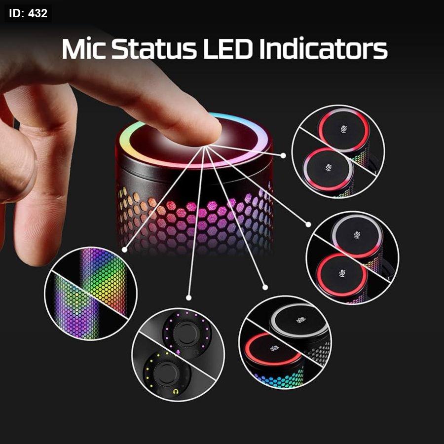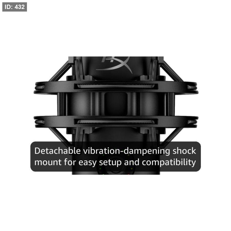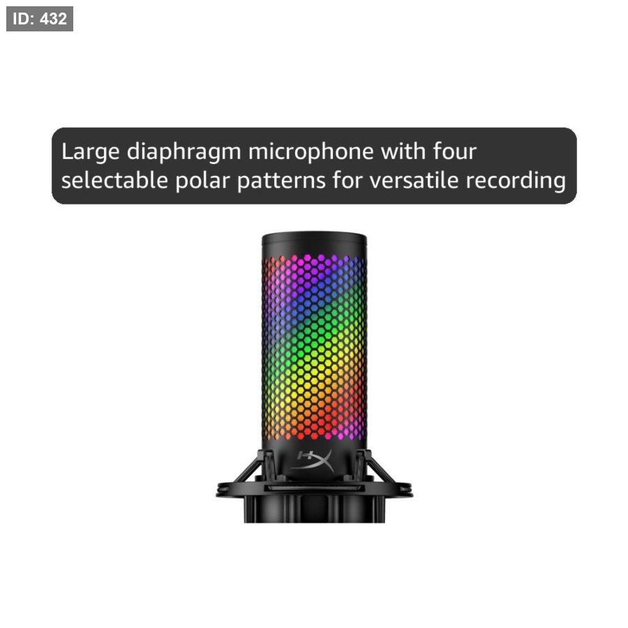 إضاءة RGB قابلة للتخصيص: قم بإضفاء طابعك الشخصي على جماليات الميكروفون باستخدام تأثيرات إضاءة RGB الديناميكية التي يُمكن تخصيصها حسب تفضيلاتك باستخدام برنامج HyperX NGENUITY.