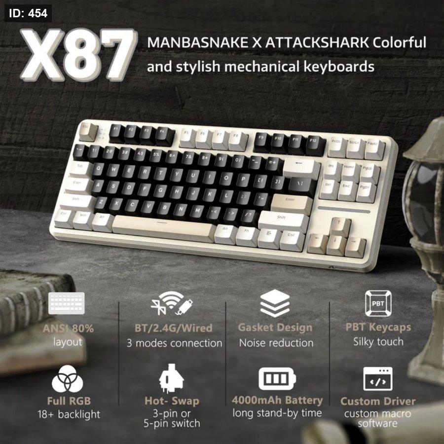 The ATTACK SHARK X87 Tri‑Mode Gasket Mechanical Keyboard is a feature‑rich 80 % TKL board offering solid specs
