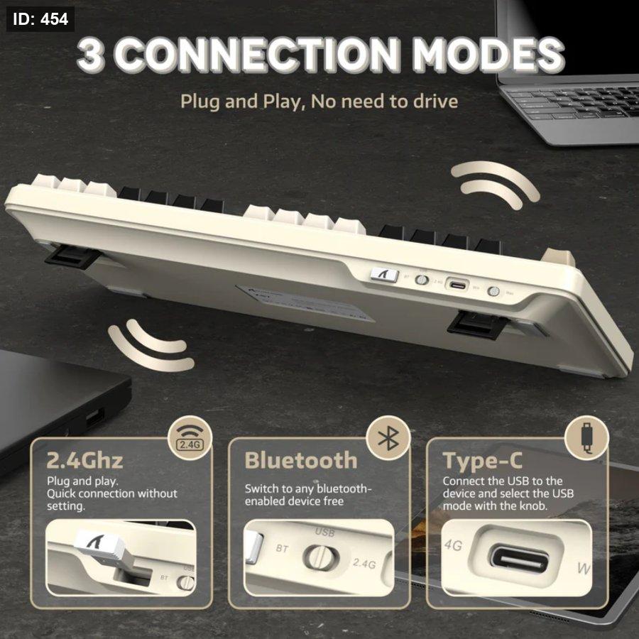 Tri‑mode connectivity: Bluetooth 5.0, 2.4 GHz wireless, and wired USB‑C; supports multi‑device pairing with quick device‑switch shortcuts .